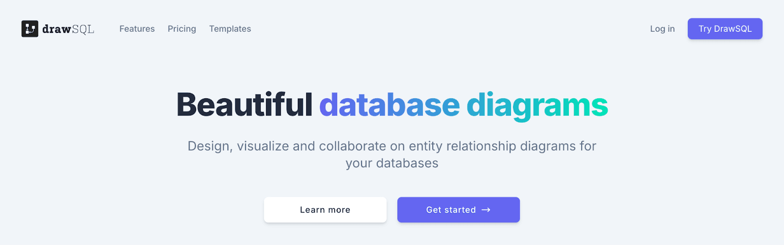 DrawSQL is a cloud first database diagram tool that focuses on a smooth visual experience and team collaboration. It’s the kind of tool you can open and start using immediately.
