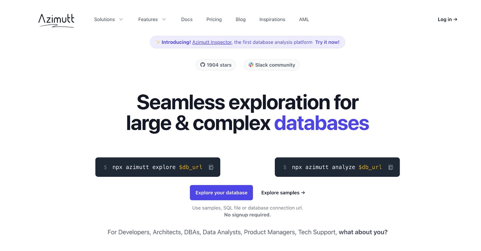 Azimutt is a database exploration and schema analysis tool that’s excellent when your schema is large and messy. It’s less about drawing from scratch and more about understanding what exists and spotting issues.
