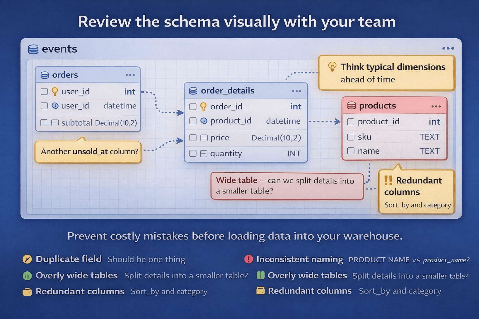 Close the loop: designing schemas visually first leads to fewer rebuilds, less wasted compute, and more stable analytics as your warehouse grows.