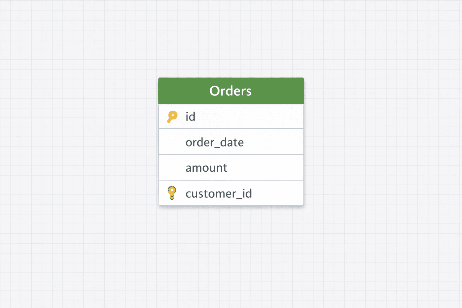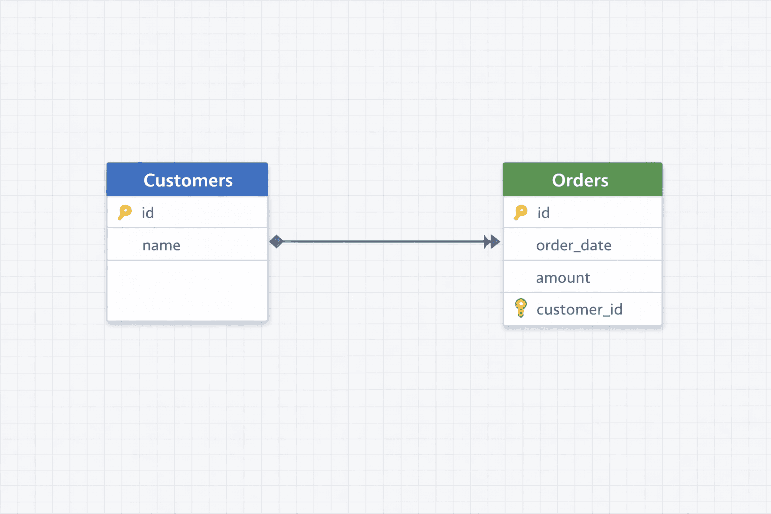 The rule: The "many" side always holds the foreign key, orders reference customers, not the other way around.